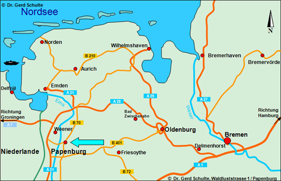 über die B 401 ab Oldenburg nach Papenburg zu fahren. Biegen Sie in